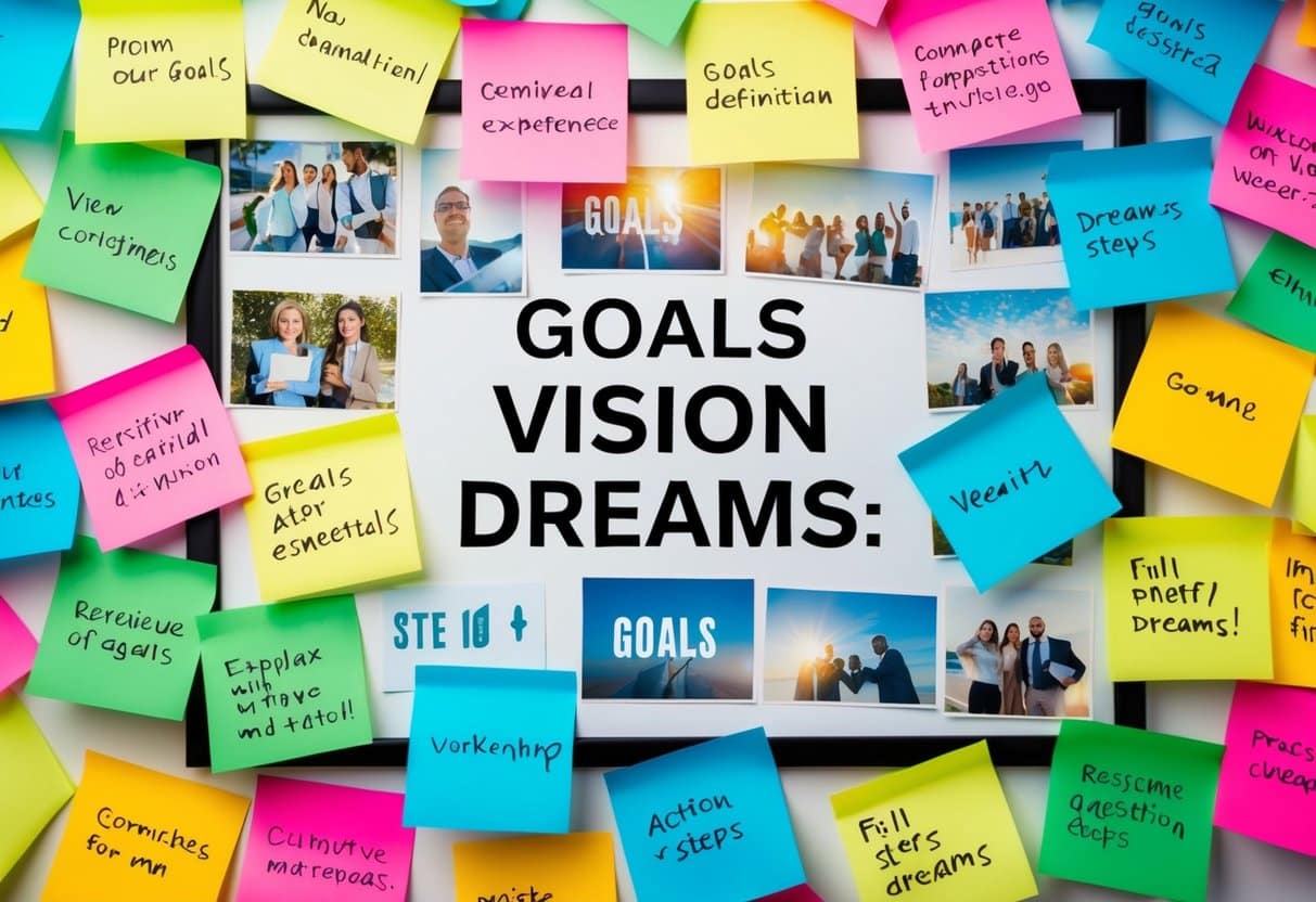 Vision boards are powerful visual tools that help you clarify and focus on your goals. You create these boards by collecting images, words, and quotes that represent your dreams and aspirations. Arrange these elements on a poster board or digital canvas to form a compelling visual representation of your desired future.
