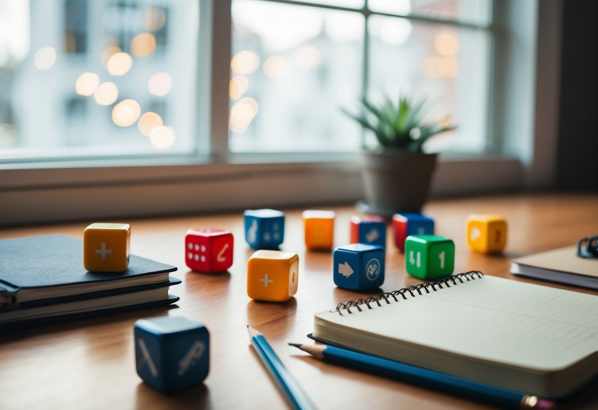 Roll the cubes and let your mind wander as you craft a tale based on the symbols that appear. You can start with just three cubes and gradually increase the number as you become more comfortable with the exercise.